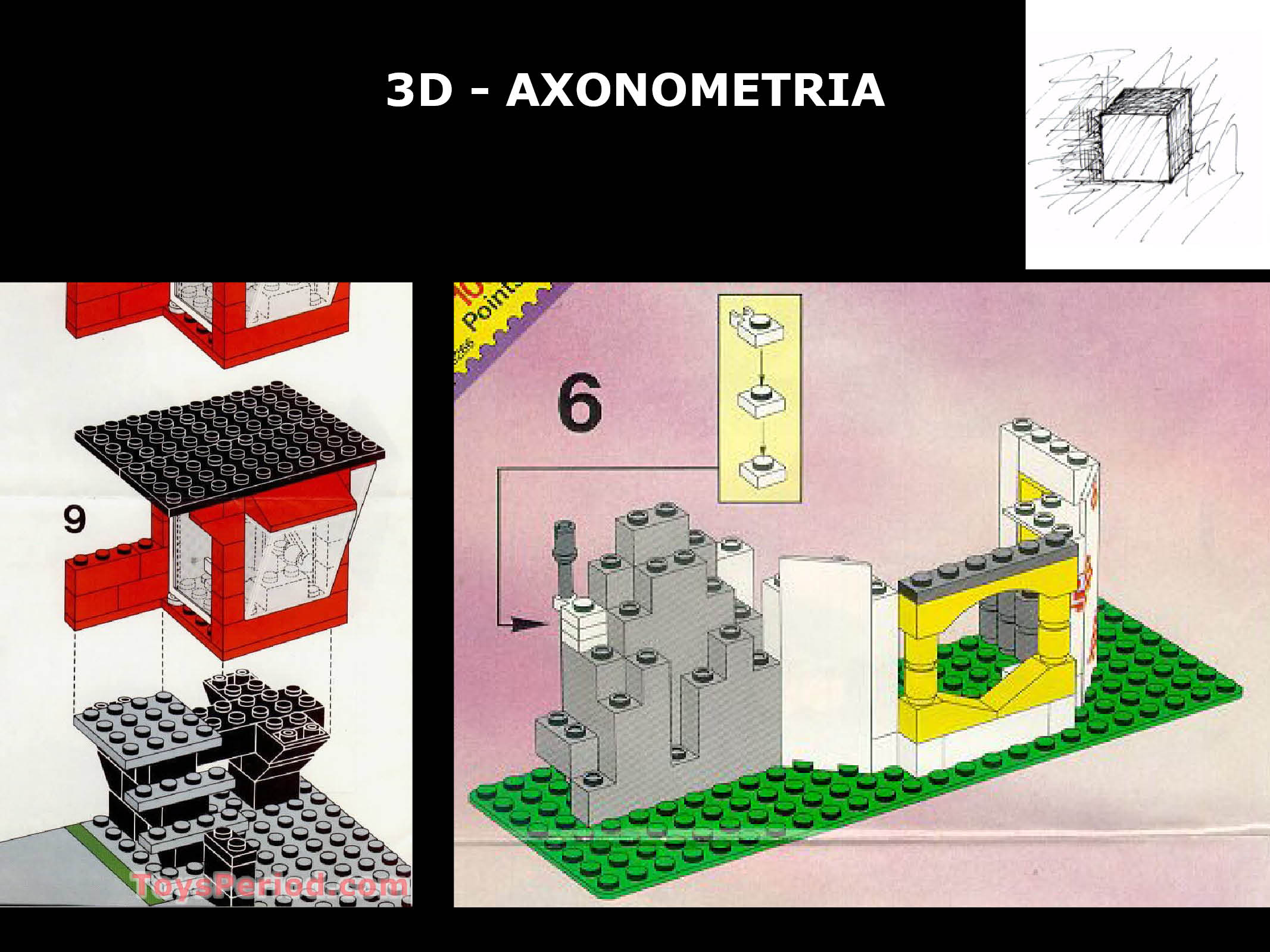 Majd arra kérem őket, hogy egy dobozból húzzanak 4-5 legókockát, esetleg figurát is, abból építsenek egy kompozíciót, majd ábrázolják az összes, a vetítésben tárgyalt ábrázolási rendszerben. Az ábrákat A4-es lapon, átgondolt koncepcióval jelenítsék meg. Akinek jobban megy, illetve hamar kész van, az választhat legófigurát is kihívásképpen.