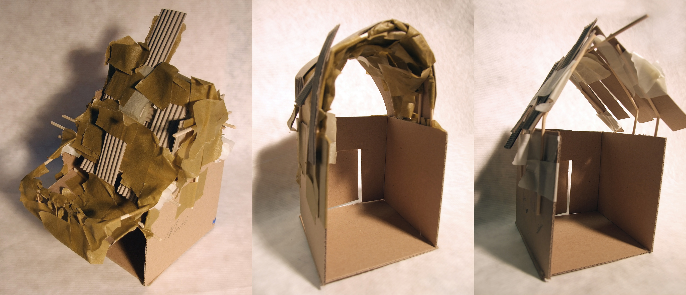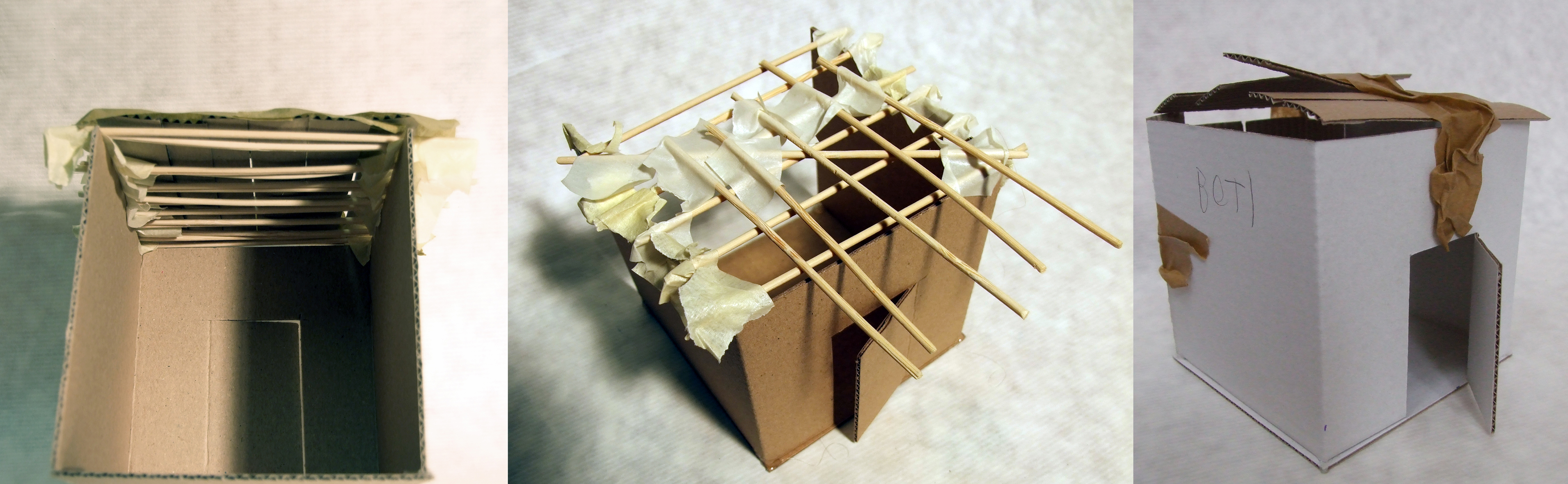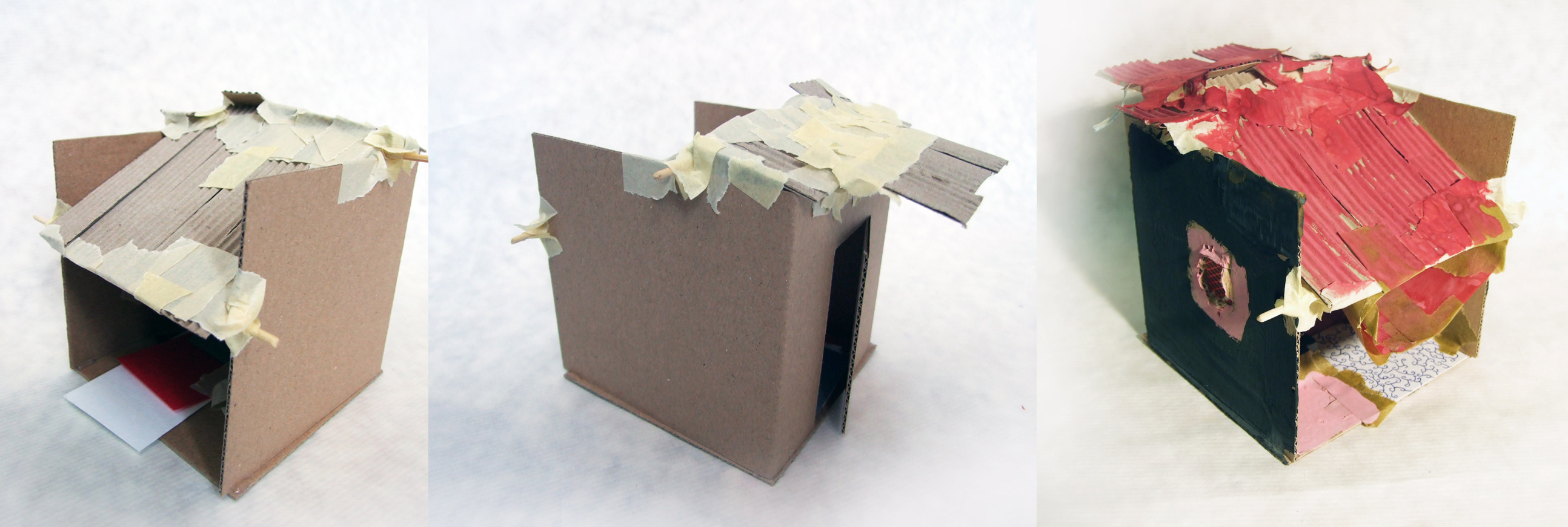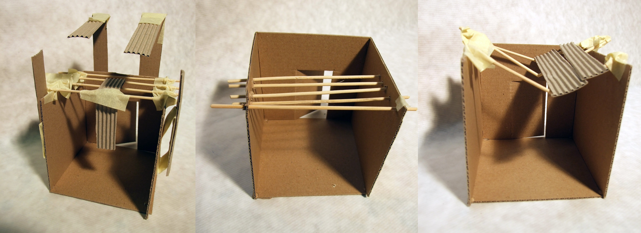 Assignment: Design a roof structure and rain cover for a house with three walls. When they’re done, they can paint and decorate the house.