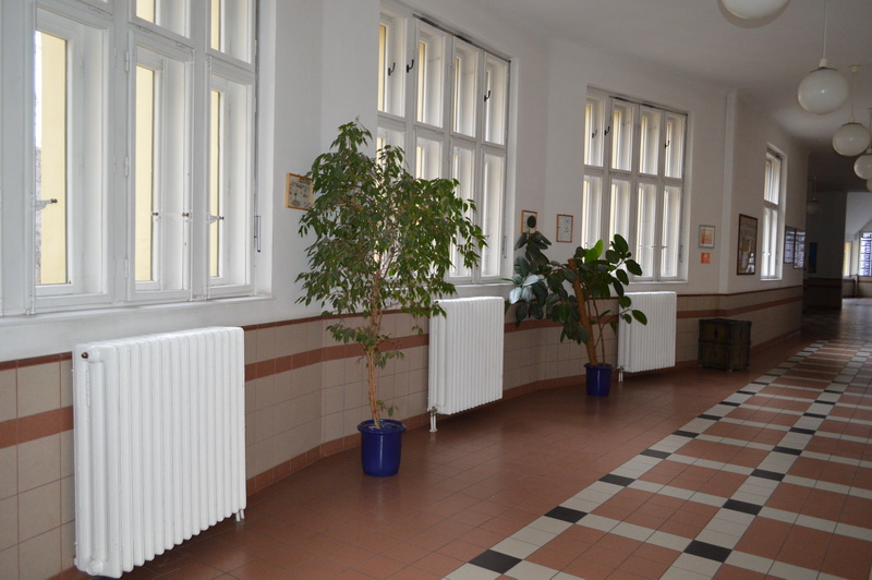 Iskolánk hatalmas: alagsor + 4 emeletes, hosszú-hosszú folyosókkal, nagy belmagasságokkal. A kb. 15 éve zajlott átépítés-felújítás előtt voltak zsibongóink minden emeleten, de az optimális kihasználtság igénye miatt ezeket tantermekké és csoportszobákká alakították. Van egy aulánk büfével, de ez elég távol helyezkedik a termektől, ezért kihasználatlan. A termek közelében megmaradt szabad területek bútorozatlanok, néhány növény éldegél itt kiállítási tablók társaságában, az osztályok jellemzően a saját termükben “kuttyognak”, fájóan hiányoznak a találkozás helyszínei.