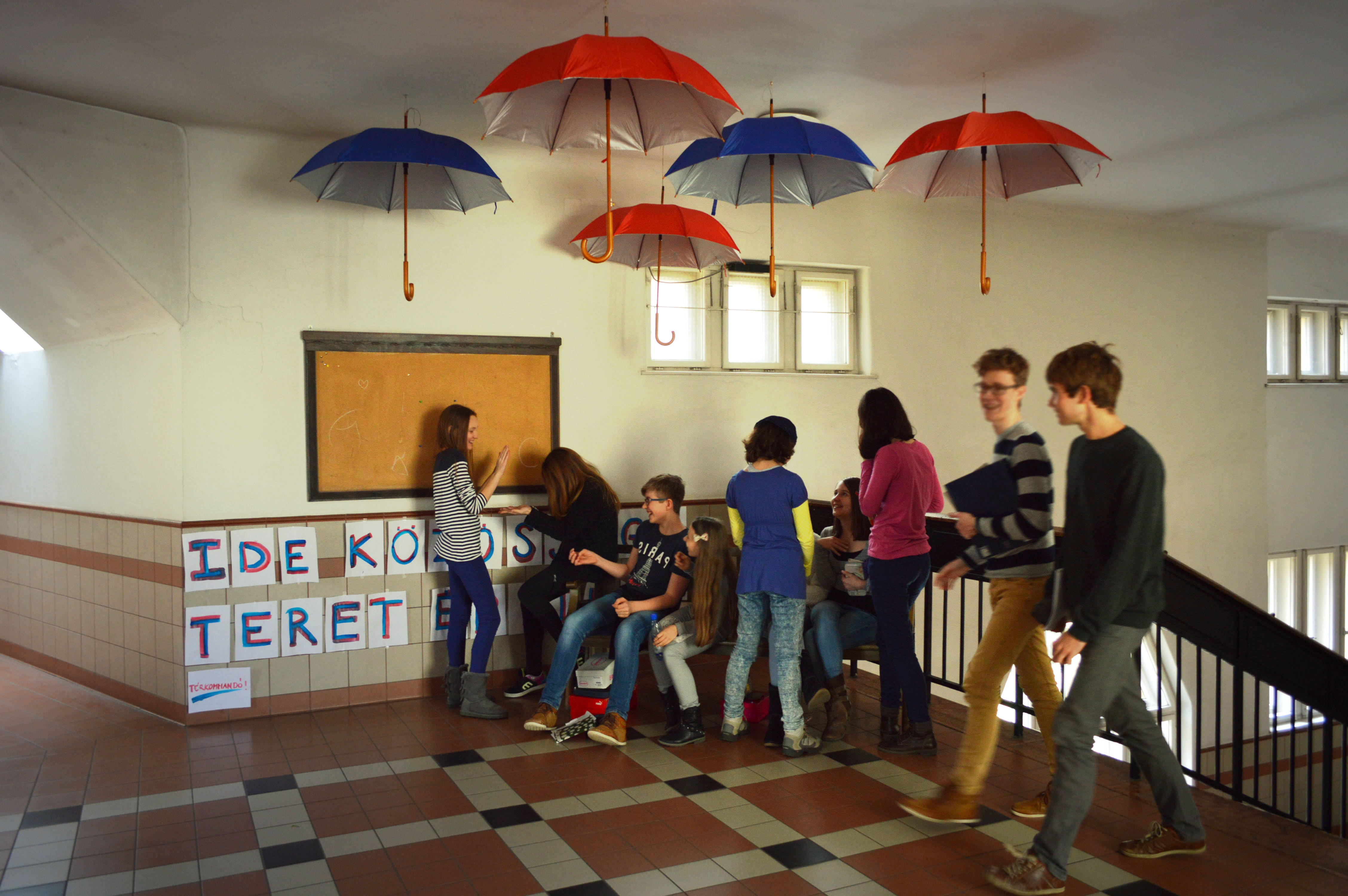 Szeptember óta dolgozunk a TérKommandó nevű szakkörrel, 7-12. osztályos tanulókkal egy izgalmas hosszútávú projekten: közösségi tereket szeretnénk az iskolánkba, olyanokat, amelyek közel vannak a termekhez, a 15 perces szünetekben is kihasználhatóak konzultációra, beszélgetésre, pihenésre, házimásolásra, evés-ivásra, vagy egy villám-sakkjátszmára. Meggyőződésünk, hogy kisebb-nagyobb közös kuckók létrehozásával erősödni fog a közösség, végső soron jobb lesz nálunk tanulni vagy tanítani.