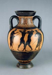 Attic-black-figure-vase-with-wrestlers-5th-c-BCE