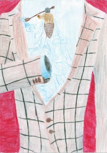 A következő rajzóráig nekem volt házifeladatom: beszkenneltem a kész munkákat, kicsit korrigáltam photoshopban (kontraszt, szaturáció), és lekicsinyítve (4db/A4) kinyomtattam és felvagdostam a kártyákat. Két oldalas nyomtatással dolgoztam, egyik oldalon képek, másik oldalon osztálypakli-hátlap.