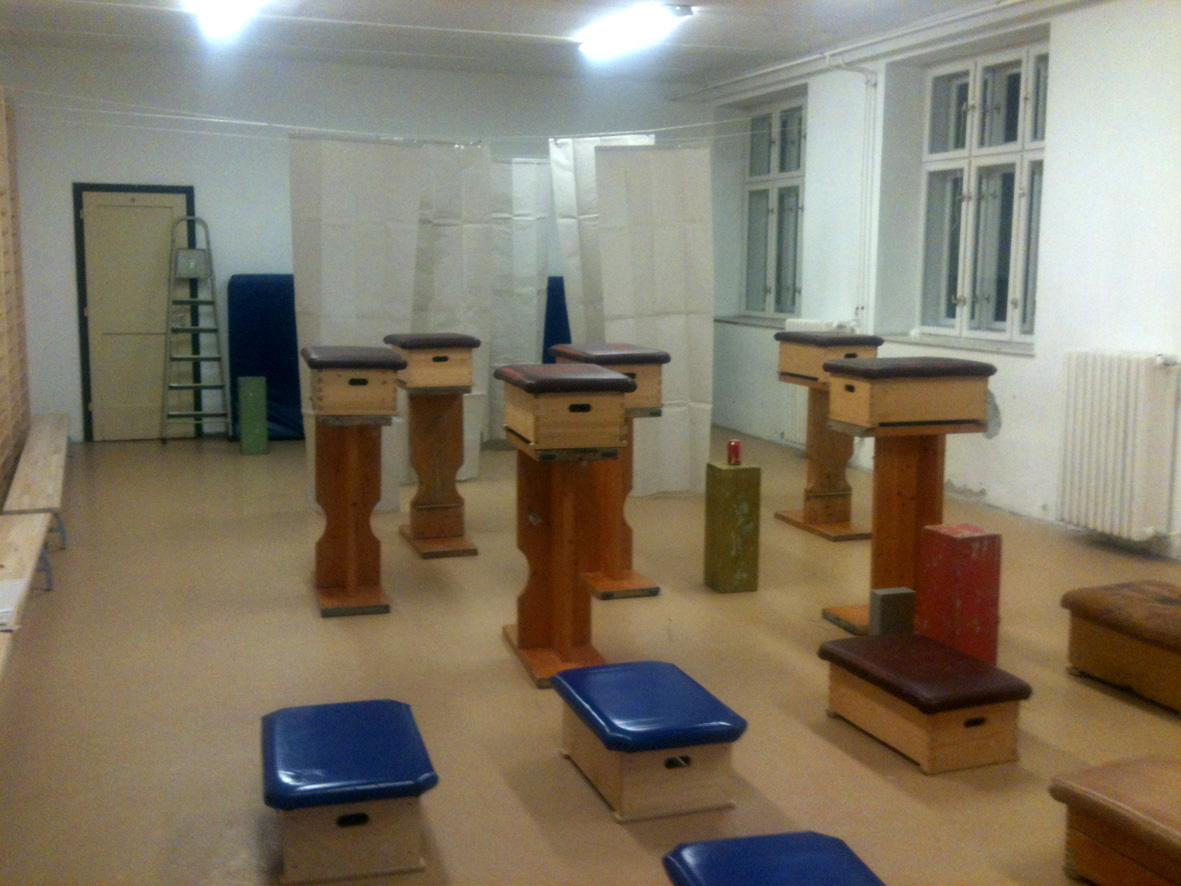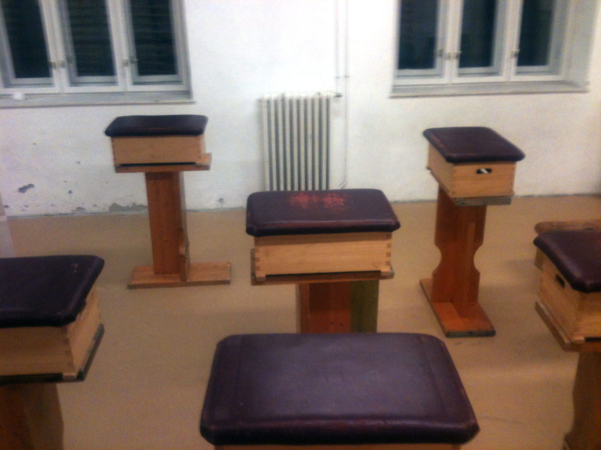 Három részre osztottam a termet: az első részt alacsony zsámolyokkal rendeztem be, ez volt a legkönnyebb pálya, mert ezt mindenki át képes látni kvázi felülnézetből.