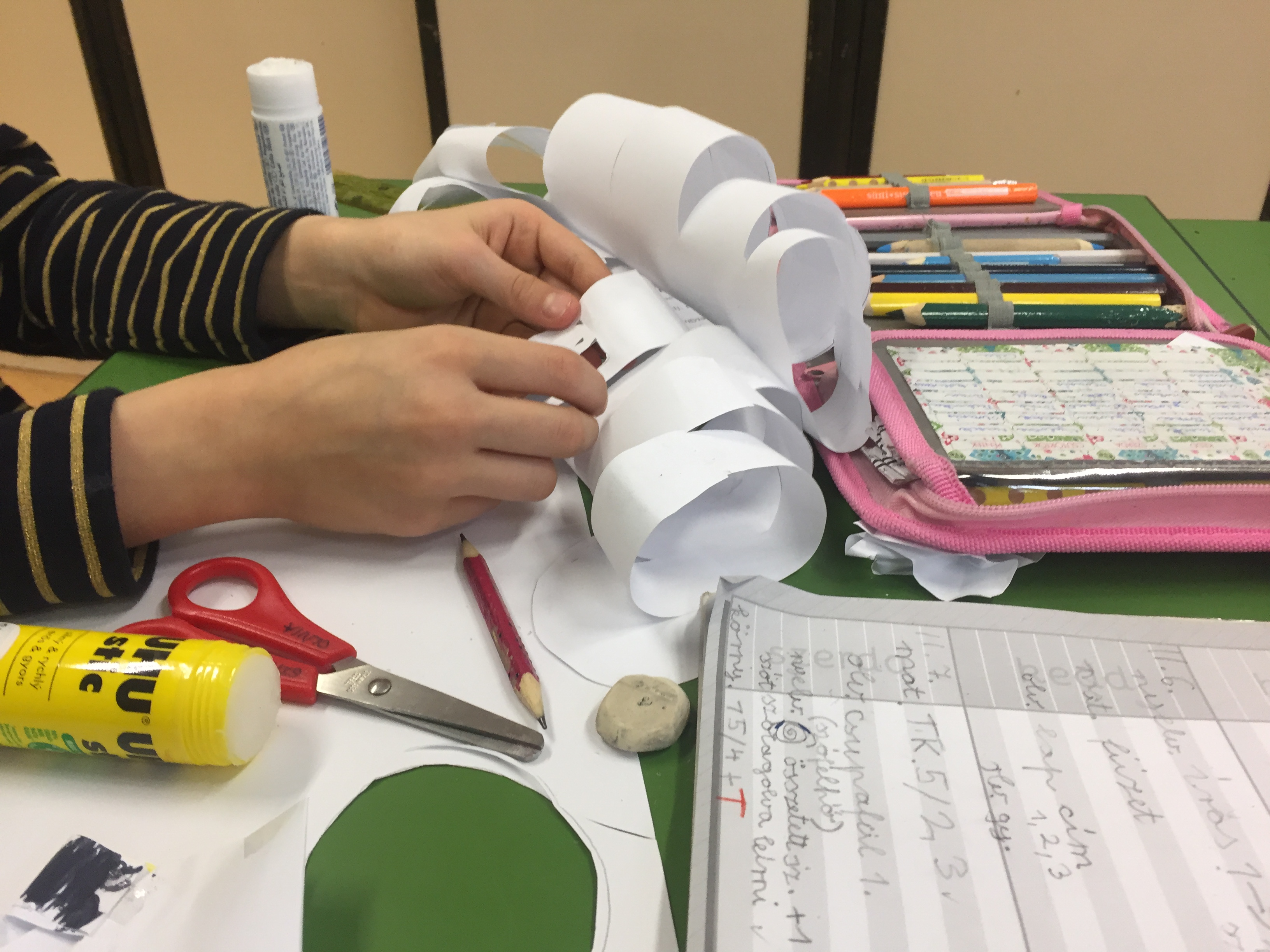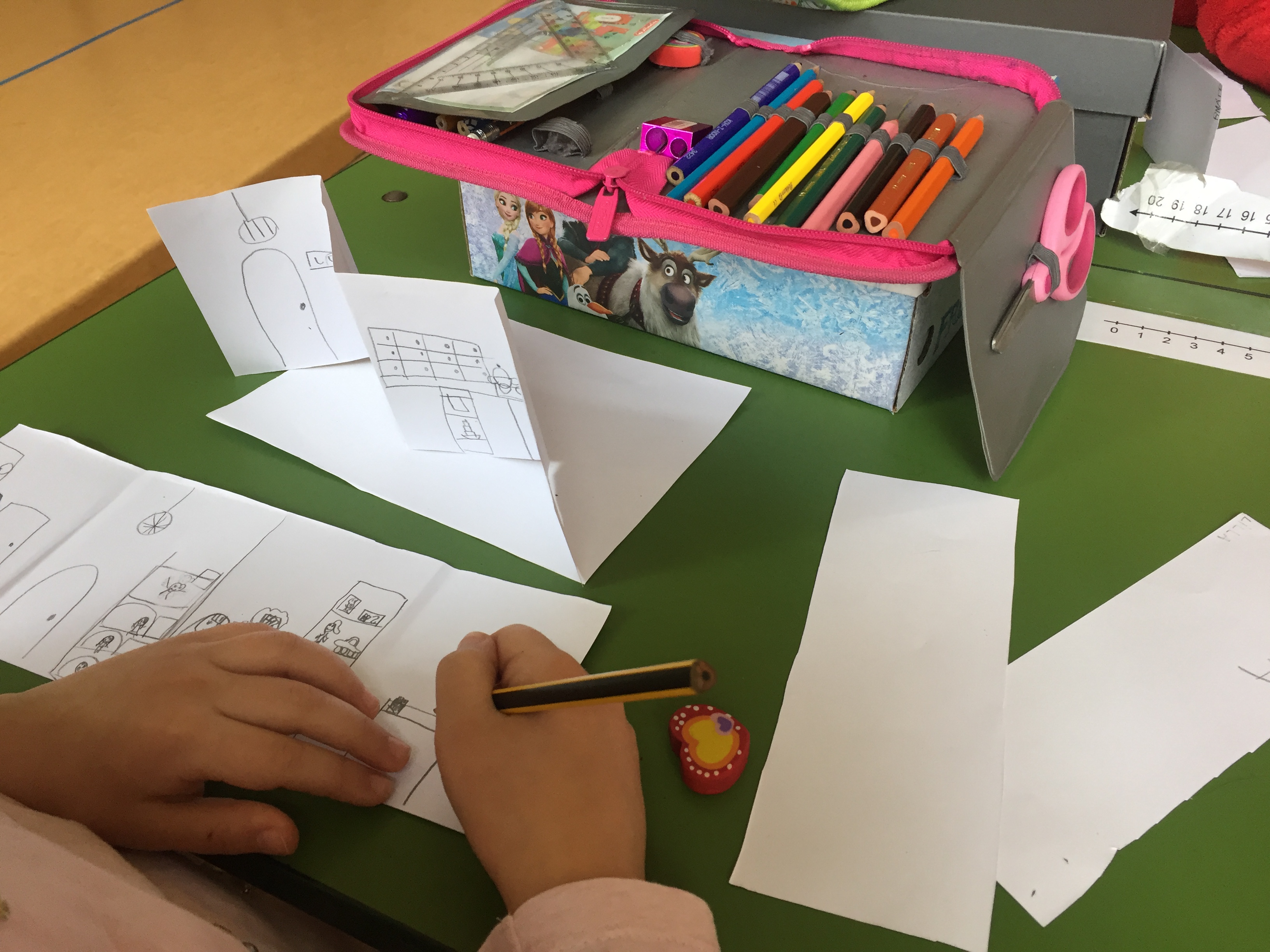 These tasks develop the spatial competences of 6-10 year old’s (spatial vision, mental rotation, spatial manipulation) and can be used in traditional 45 minute school classes: we work with scissors, paper, colored pencils and glue sticks, the children receive a couple of examples and a starting point, the rest is left to their creativity.