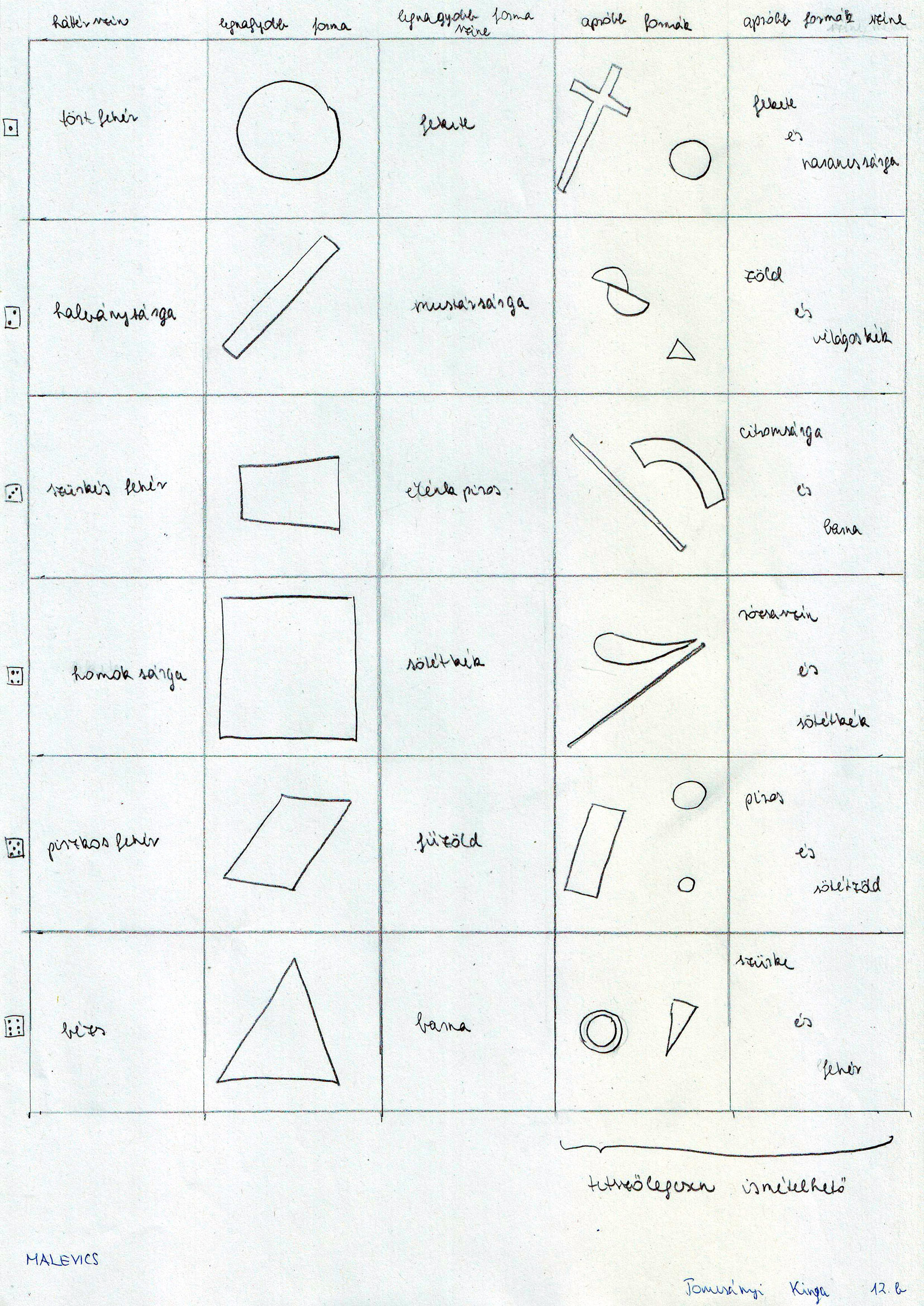 Arra is figyeltem a lista összeállításánál, hogy a kész táblázatokból majd komoly rajztechnikai tudás nélkül is felismerhetően rekonstruálható legyen a műalkotás.