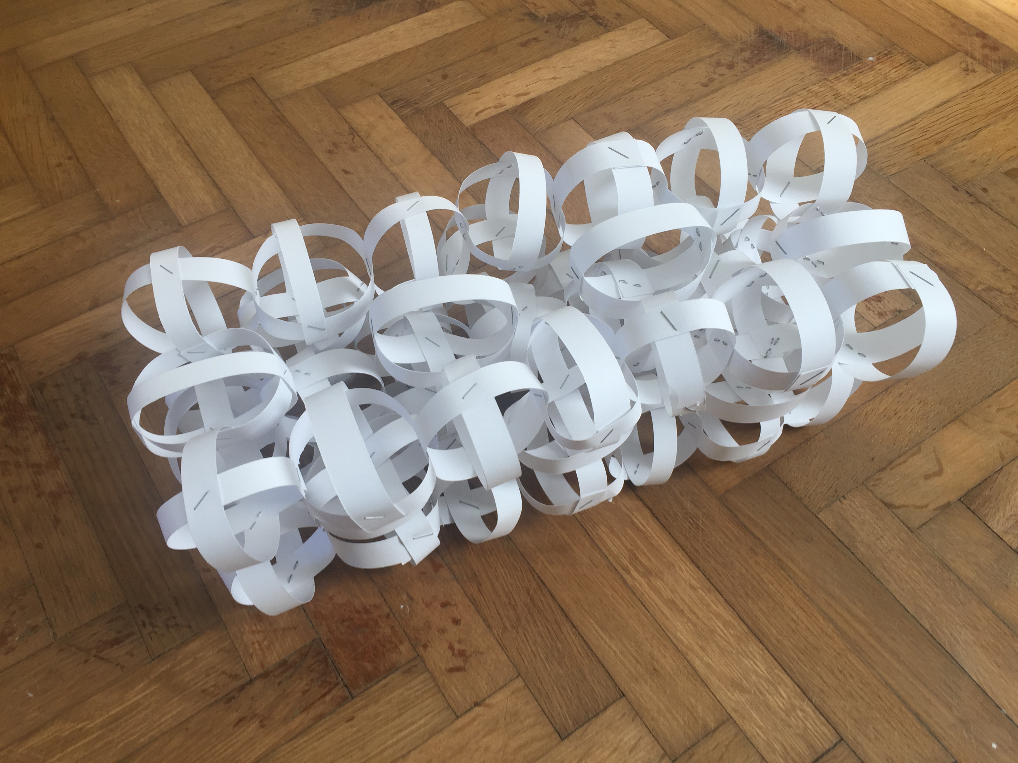 - With the basic element and its iterations, and the time available, build as exciting spatial structures as possible– from the same basic element, but with different parameters (e.g. pinning angle, link point offset, rotation, etc.)