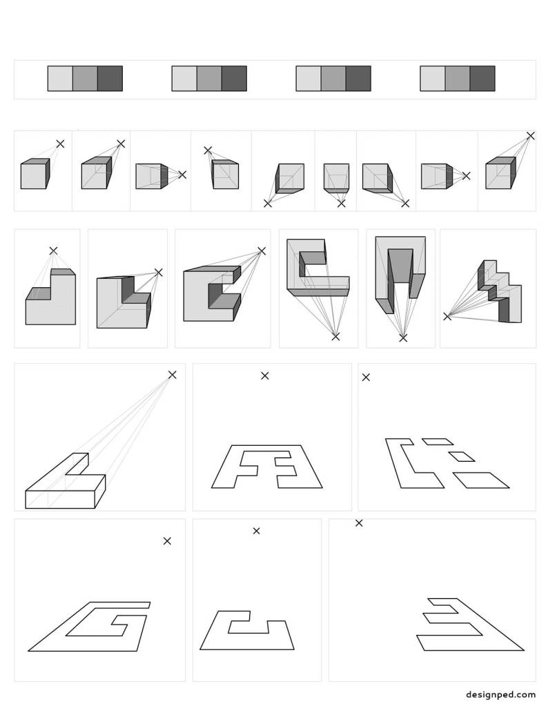 After my Isometric 3D Maze and Oblique Projection 3D Maze drawing activities, here is another one of this kind: One Point Perspective 3D Maze. Your students will work on forms from easy to difficult. They will be guided through a set of 3D cube drawings and an easy maze-drawing while practicing three values. After that they can create their own 3D maze at their own pace.