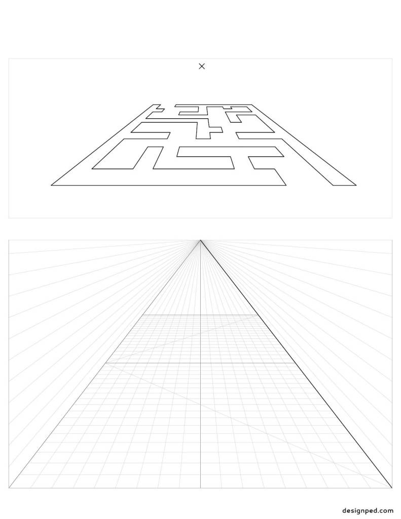 Térbeli labirintus egyiránypontos perspektívában – One point perspective 3D maze