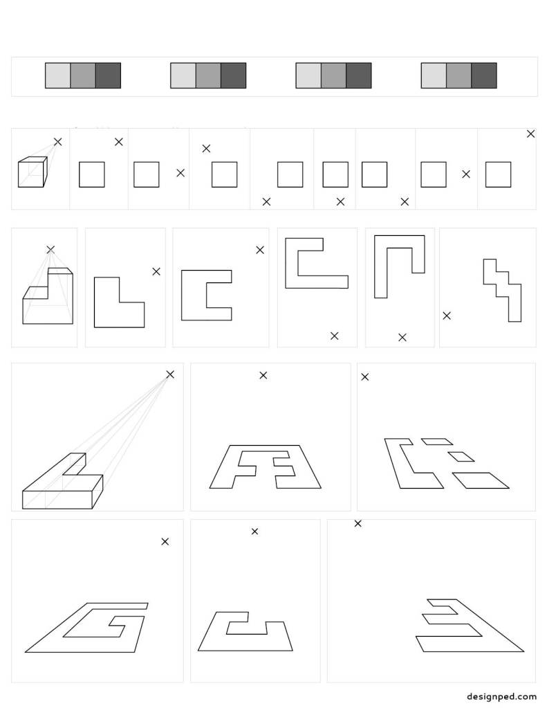 It is recommended that students have some introductory guided instruction on the basics of perspective drawing before using the handouts.