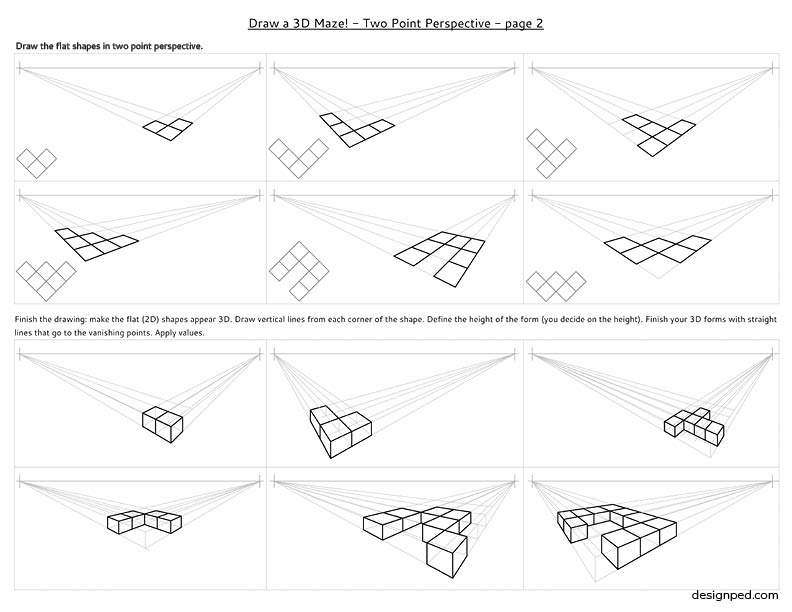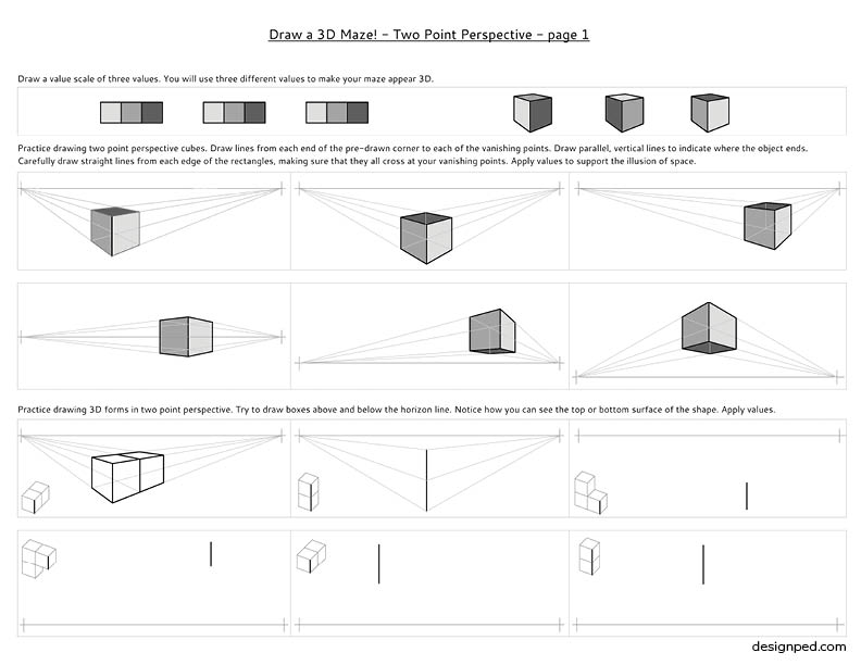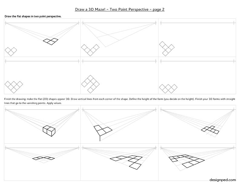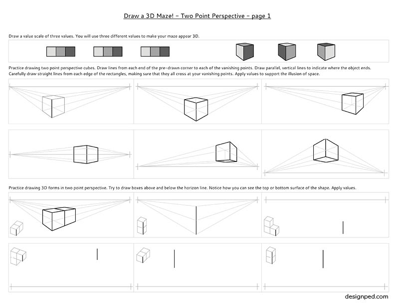 It is recommended that students have some introductory guided instruction on the basics of perspective drawing before using the handouts.