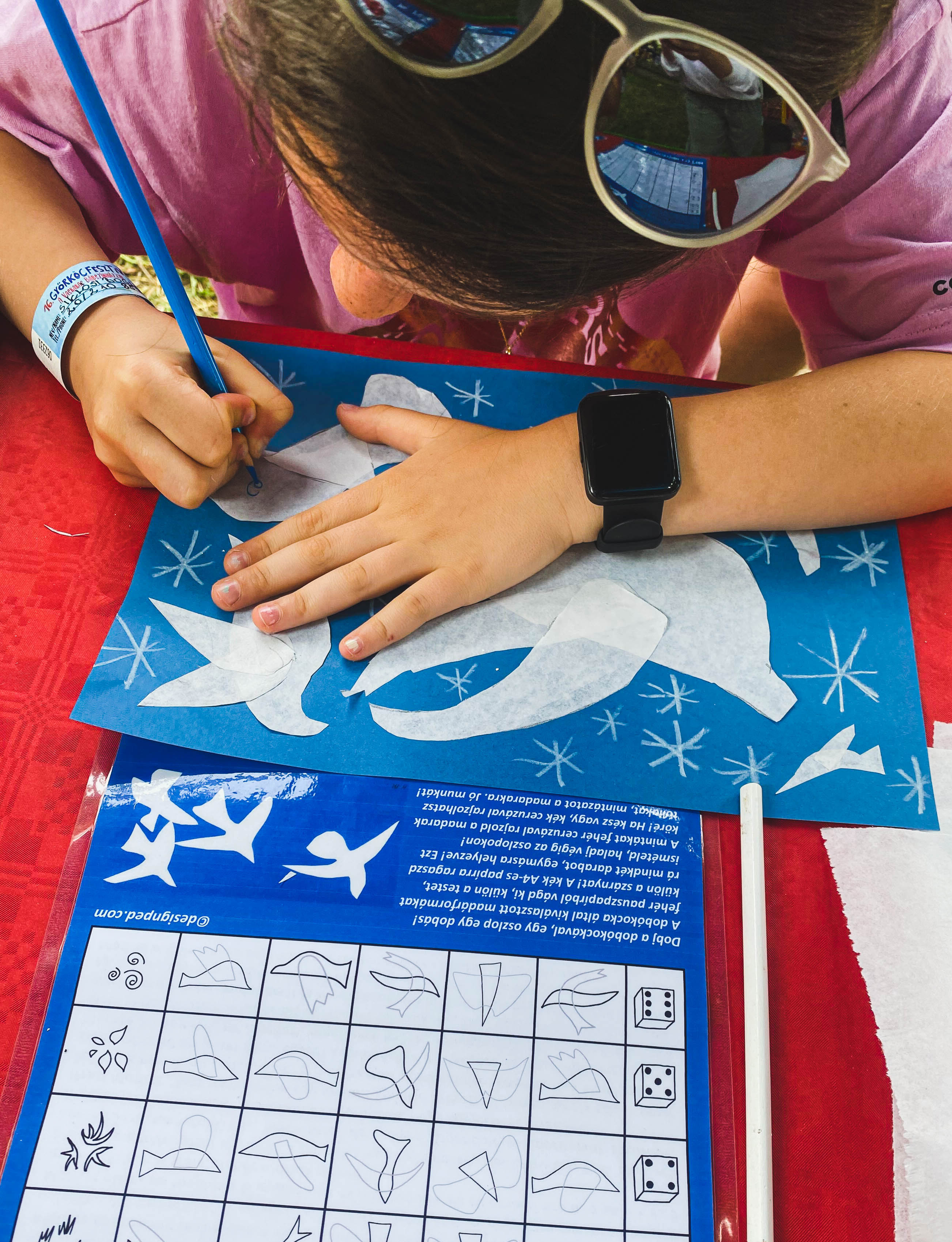 - Now, it’s time to add some patterns! Use a white pencil to draw patterns around the birds, get creative!